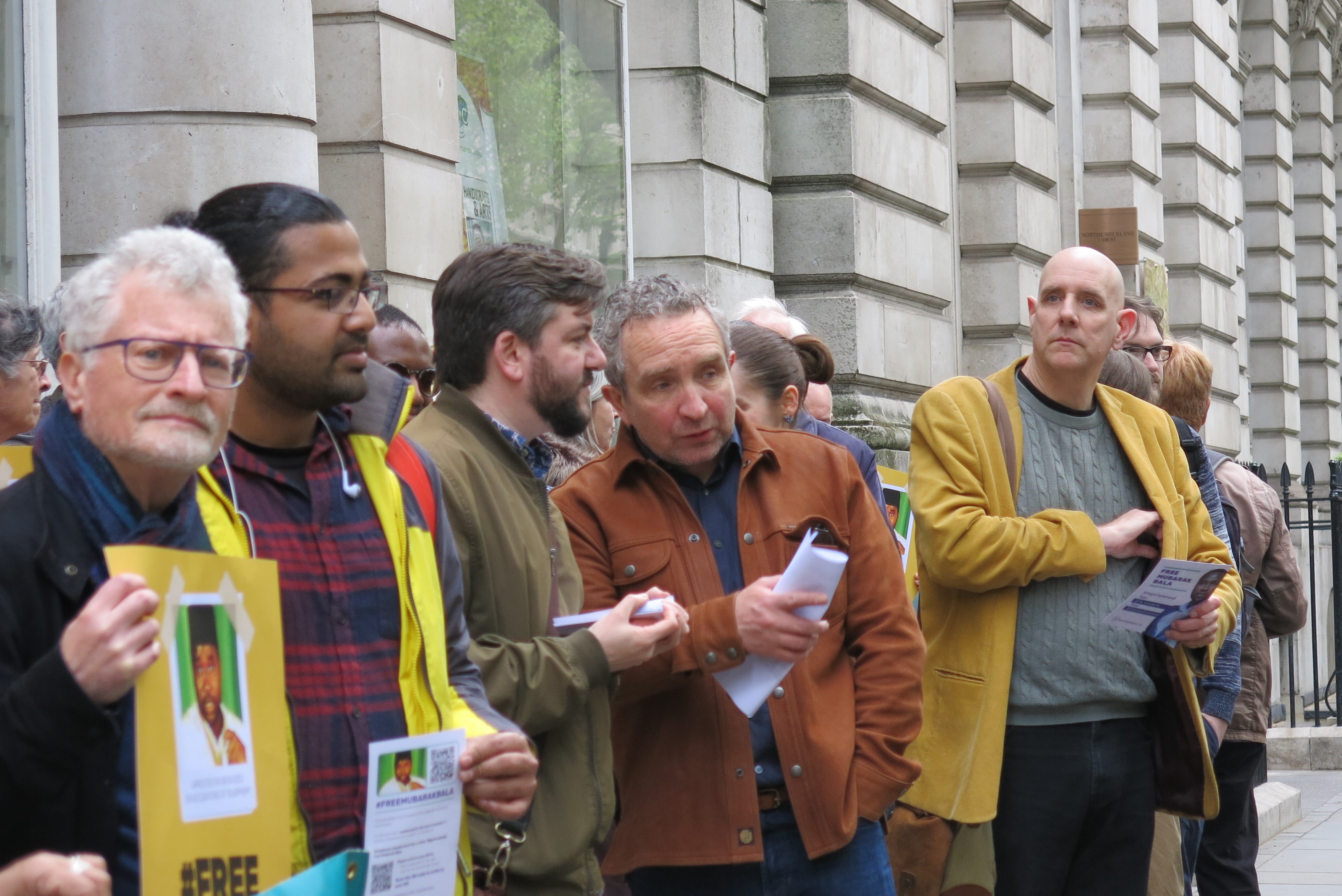 Pictured: Humanists UK’s #FreeMubarakBala protest outside the Nigerian High Commission, London, 2022. Two members of the Salisbury group can be seen, centre. Picture: Humanists